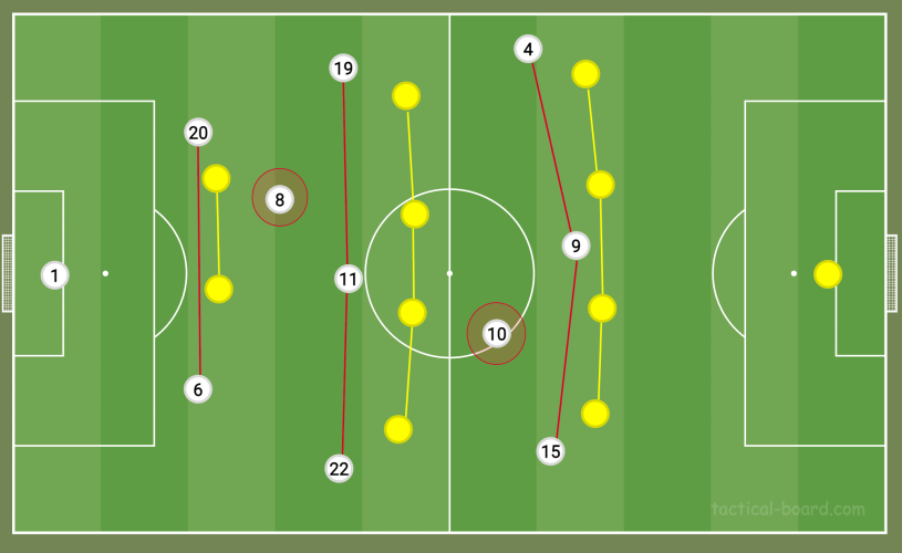 Closing off a lot of the pitch has helped to keep a narrow structure and has meant other teams’ only route past the low block has been with quick switches of play — which is far from ideal.