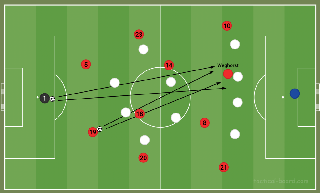 Weghorst would have options to flick the ball on for a runner in behind or hold the ball up, turn and find someone with a floor pass.