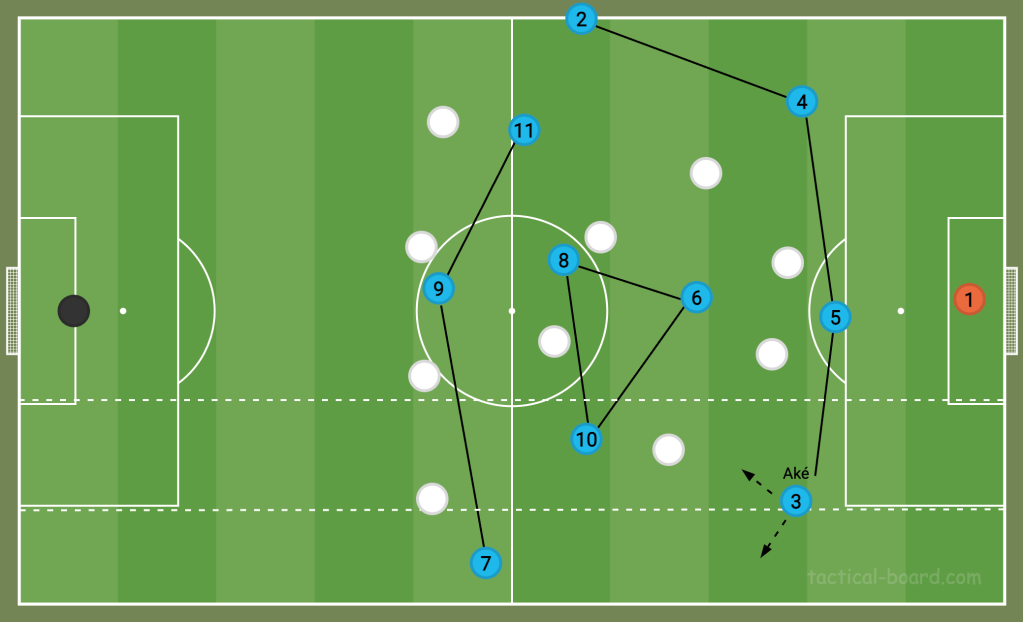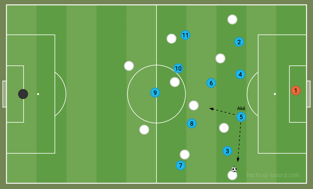 Having gained an understanding of the requirements of a midfielder and a left-back, Aké is now often seen stepping out of his default centre-back position to cover for teammates or to cut out potential danger.