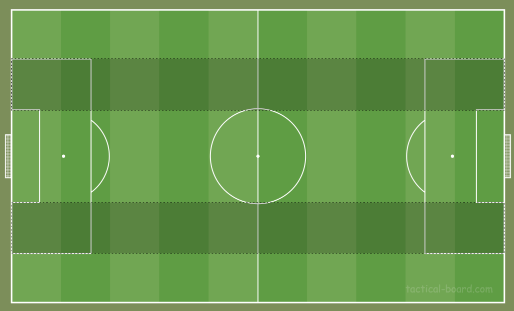 The half-spaces are the second and fourth columns from left to right on a football pitch, between the wings and the central zone. They’ve become an important reference point for teams implementing styles or movements dependent on player spacing. The next best route to goal after the central zone, they’re closer than the wings to the most dangerous areas, but they still maintain diagonal passing options.