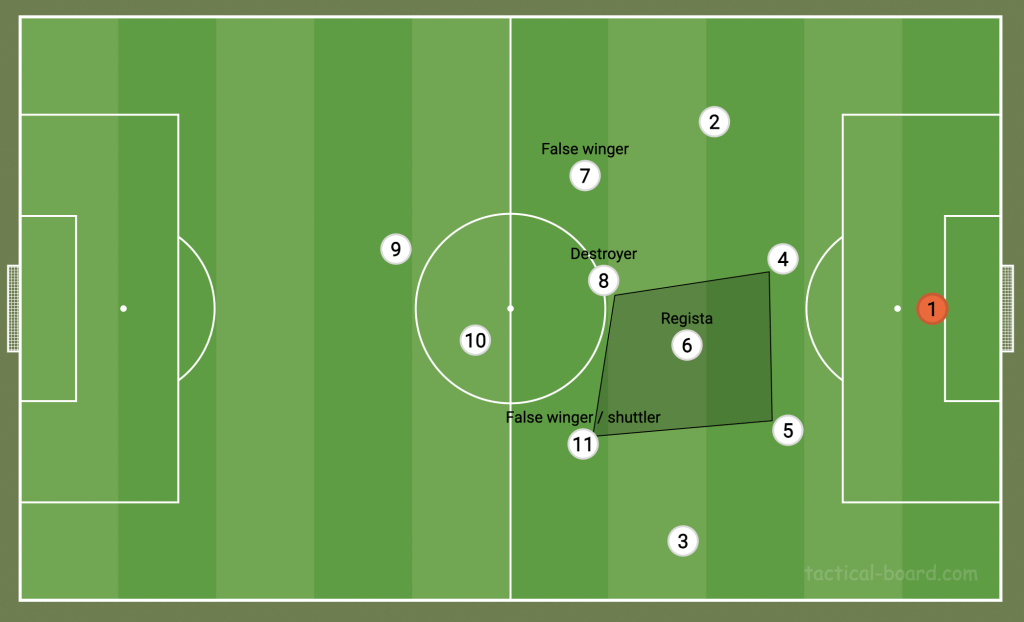Registas became particularly popular in the early 2000s when the domination of possession arose as the most desirable tactic for elite sides. Italy’s 2006 World Cup-winning side centred around Pirlo as the regista, with Francesco Totti as a trequartista.
