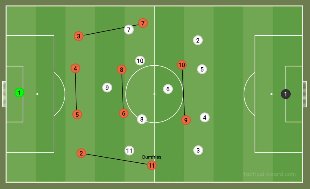The Netherlands need to relieve Dumfries of such defensive responsibility. A 4-4-2 would not only solve this issue but many more, too.