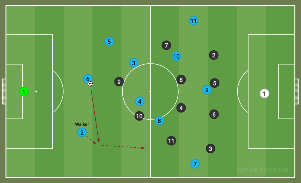 However, this season, he’s taken on a new role in Pep Guardiola’s Man City team. City have brought the 4-4-2 back into fashion. With narrow wingers, full-backs like Walker have been providing the width. This has had a few effects on Walker’s involvement.