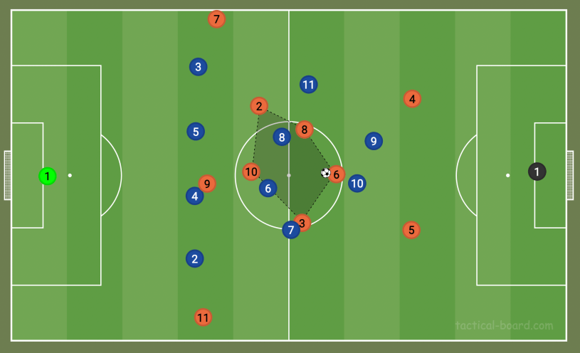 Some managers have tried overloading central areas, but the more this continues, the less advantage attacking teams will create. To extrapolate, a seven-man midfield — as inconceivable as it may be — would still struggle to establish control against a defending midfield of six players.