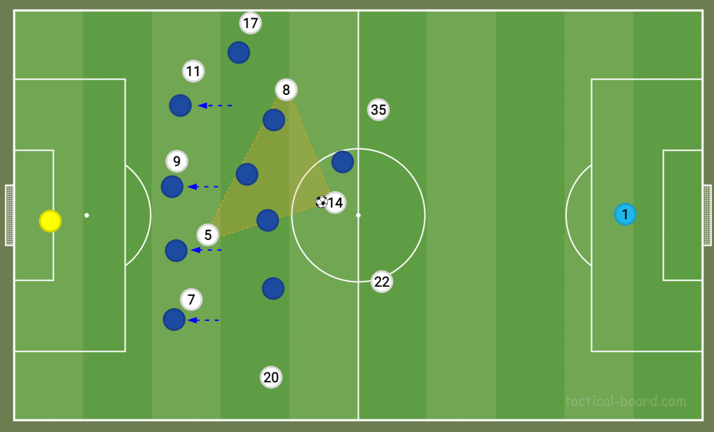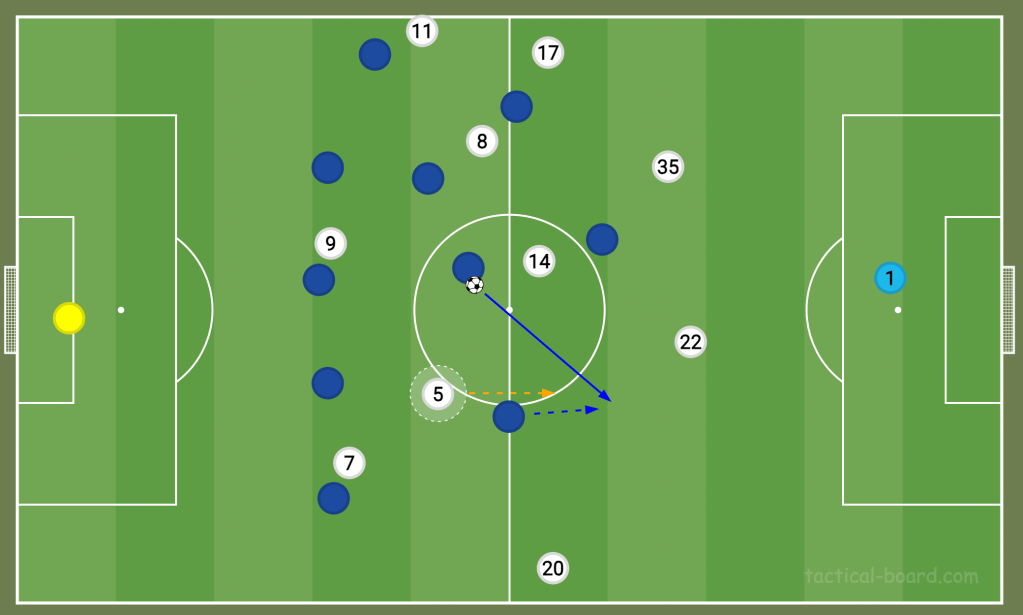 Their vulnerability to counters comes from not having a five-man rest defence. The full-backs are too wide, and the midfielders are too high. Whomever it should be sitting back, and frankly too often it’s neither the full-backs nor midfielders, when they lose the ball, they don’t have an adequate setup to defend well.